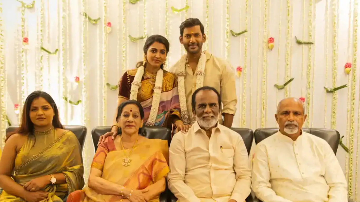 Renowned Tamil film star Vishal has officially gotten engaged to actress Sai Dhanshika. Photos from the intimate engagement ceremony, held in the presence of family members, have gone viral on social media. Recently recovering from a health scare, Vishal is now fully prepared to embark on a new chapter of his life.