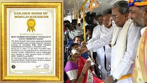 The Karnataka government’s flagship women empowerment initiative, the Shakti Scheme, has been recognized by the International Book of Records and the World Record of Excellence for achieving over 500 crore free bus journeys for women, securing a place in global records.
