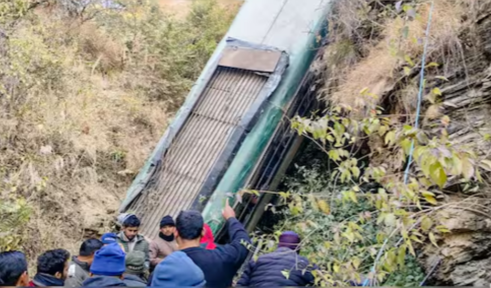 A horrific road accident occurred today in the Bhikiyasain area of Almora district, Uttarakhand. A passenger bus carrying around 18-19 people lost control and plunged into a deep gorge , resulting in at least 7 deaths and about 12 injuries.